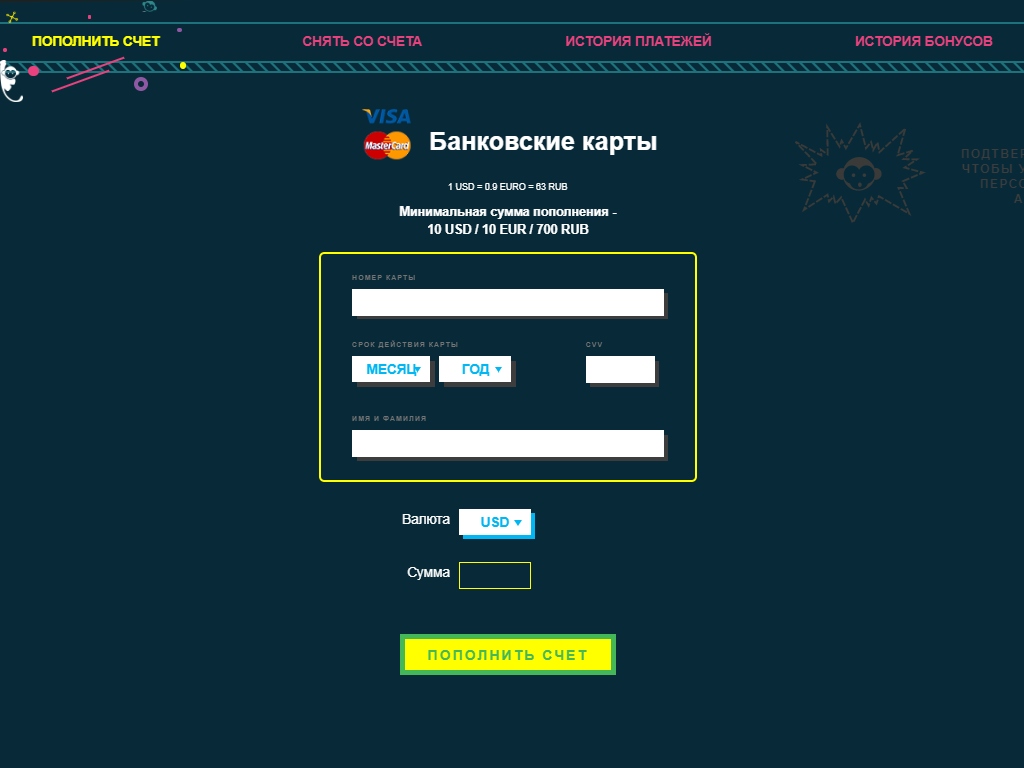 - Получить сорванный куш можно только на счет, с которого ранее игрок делал депозиты в казино;