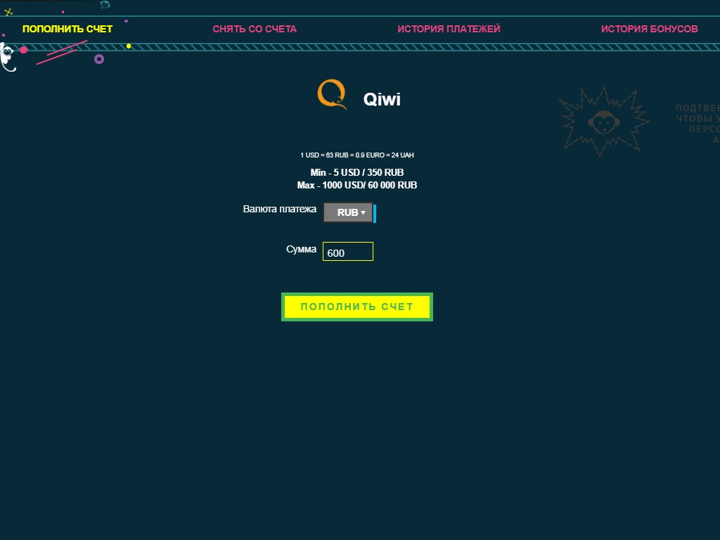 - При переводе более 6 000 рублей за раз заведение должно подтвердить данные пользователя. Проверка осуществляется на протяжении 48 часов с момента запроса со стороны игрока;
