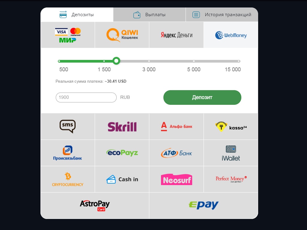 Выбирая любой из вариантов для начала, стоит ознакомиться с комиссией платежной системы и временем зачисления. Казино не берет комиссию за вывод средств или прием депозитов. Также тут моментально обрабатываются заявки от клиентов