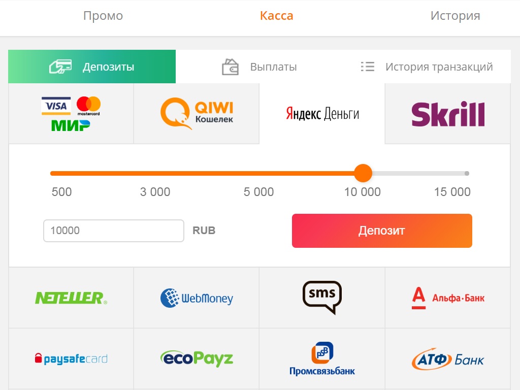 Количество платежных систем на официальном сайте и работающем зеркале Slot V не слишком большое, но здесь есть все необходимые рядовому гемблеру варианты. Список выглядит следующим образом: