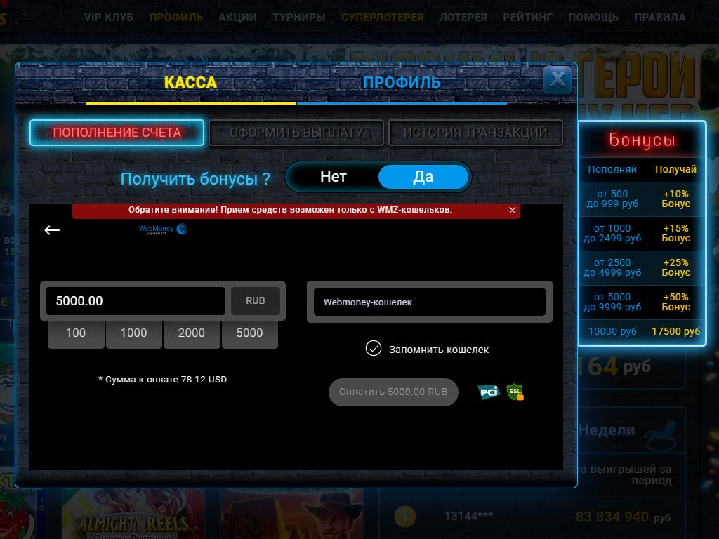 Вулкан Старс Россия – вывод реальных выигрышей в личном кабинете